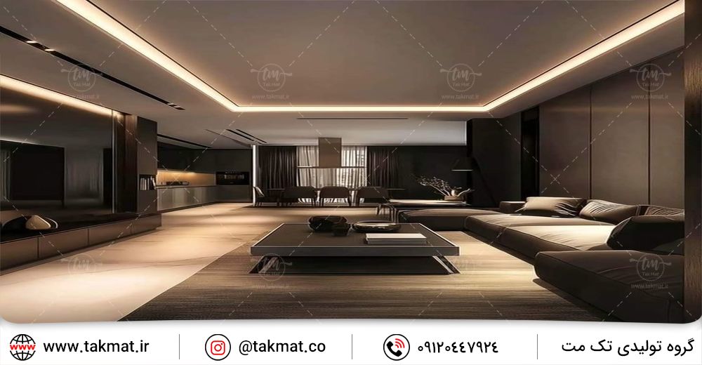 - پذیرایی: پذیرایی و اتاق نشیمن در ساختمان های مدرن دارای گچبری های به روز شده ای هستند که محل قرارگیری پروفیل نور خطی کناف محسوب شده و می توانید با استفاده از آنها جلوه های نورانی جذابی داشته باشید.