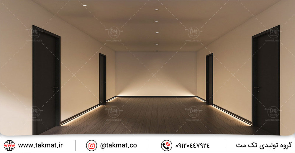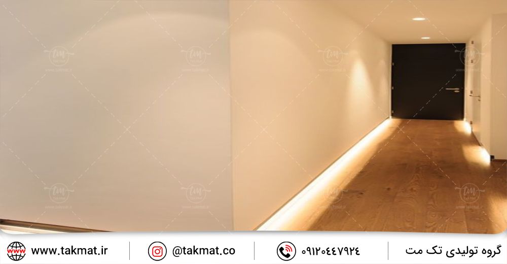 - روشنایی در پایین دیوار : نور ملایم و روشنی را در پایین دیوار ایجاد می کند که حس آرامش و راحتی را به فضا می دهد.