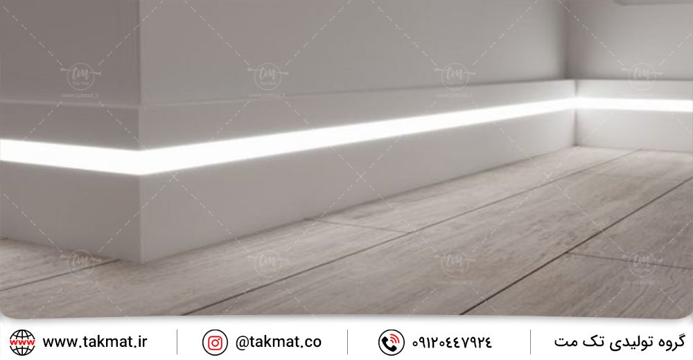 - محافظت از درز کاشی : قرنیز نوری باعث محافظت از نقاط اتصال بین کف و دیوار می شود و درز کاشی ها را پوشش می دهد و از ورود رطوبت جلوگیری می کند.