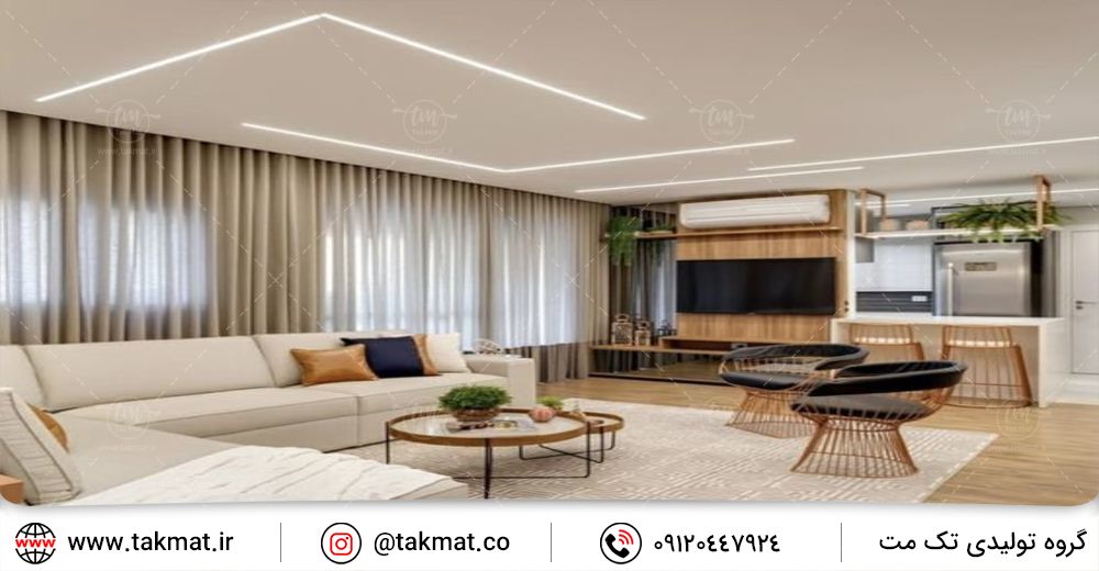 - نورپردازی زاویه دار: با پروفیل نورمخفی در زوایای مختلف می توان نورپردازی کرد و فضا از نور و سایه پر می شود.