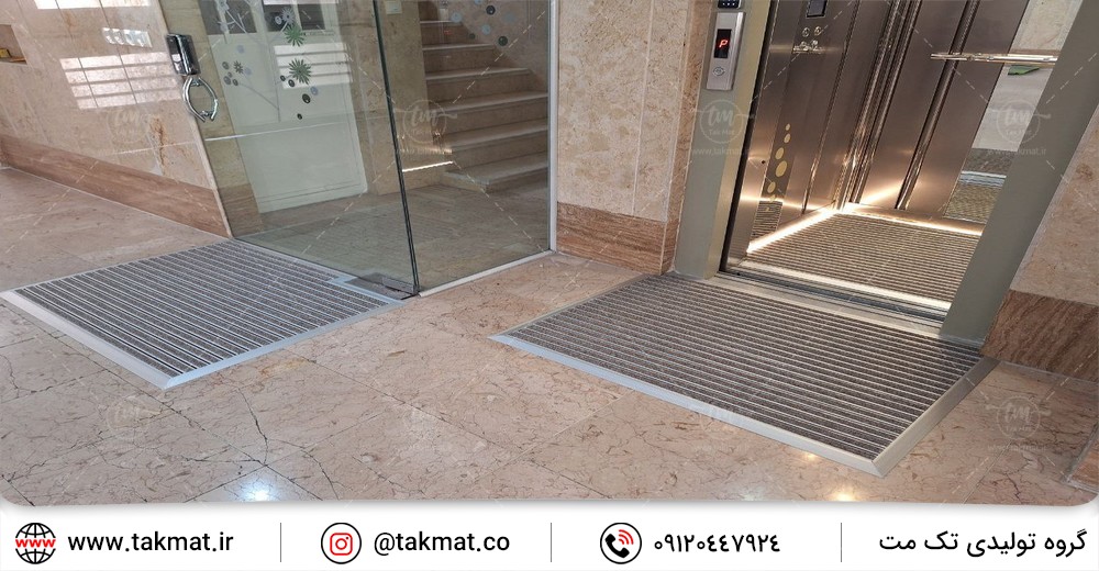 این محصول هم در داخل آسانسور نصب می شود و هم در قسمت ورودی که افراد در آنجا منتظر رسیدن کابین می مانند. این کفپوش ها مزایای بسیاری دارند که از آن جمله می توان به جذب رطوبت کفش افراد اشاره کرد.