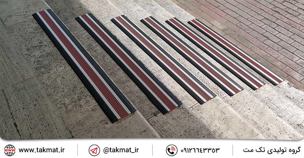 ترمز پله شیار دار یک سانتی نسل جدید ترمز پلههای گروه تولیدی تک مت میباشد که 15 سانت از فضای جلویی پله را به خوبی میپوشاند. این نوع از ترمز پله ها از پادری آلومینیومی شیار دار یک سانتی ساخته میشوند که قسمت ابتدا و انتهای آنها از رمپهای شیبدار از جنس pvc پوشانده شده است. همان طور که در تصویر میبینید، pvc استفاده شده در این نوع ترمز پله، دقیقا همان pvc تعبیه شده در پادری آلومینیومی شیار دار یک سانتی میباشد که با دارا بودن شیارهای عرضی، به خوبی باعث ایجاد اصطکاک و فرسایش میشود. از آنجا که ترمز پله شیار دار به خوبی قسمت نسبتا زیادی از سطح مقطع جلویی پله را میپوشاند، یکی از بهترین گزینه ها برای از بین بردن خطر سقوط عابرین در هنگام عبور و مرور از راه پله ها میباشد. رنگ بندی ترمزپله شیار دار یک سانتی کاملا سلیقه ای بوده و هیچ تاثیری بر کاربرد و کارایی و همچنین قیمت ترمز پله ندارد. قسمت مابین دو رمپ ابتدایی و انتهایی که معمولا از جنسpvc میباشد، اصلی ترین بخش این ترمز پله را تشکیل میدهد ؛ یعنی همان لاستیک شیاردار که به سه رنگ مشکی و قرمز و طوسی موجود میباشد. مشتریان عزیزمان اغلب در انتخاب رنگ بندی ترمز پله، این مهم را در نظر میگیرند که اولویت انتخاب رنگ بندی با رنگهای اصطلاحا چرک تاب میباشد که در این بین میتوان به رنگ طوسی اشاره نمود. رمپهایی که در قسمت ابتدایی و انتهایی این ترمز پلههای اجرا میگردد، لزوما به دلیل از بین بردن اختلاف سطح ترمز پله از سطح زمین میباشد. همان طور که از اسم ترمز پله شیار دار یک سانتی مشخص است، ارتفاع تمام شده ی آنها یک سانتی متر میباشند. این ضخامت میتواند یک مزیت برای این گروه از ترمز پله ها محسوب گردد. ارتفاع یک سانتی این ترمز پله و یا لب پله شیار دار باعث میگردد که این ترمز پله به خوبی در هر نوع تردد متوسط و یا تردد زیاد کاملا دوام و ماندگاری داشته باشد. اجرا کردن ترمز پله شیار دار یک سانتی به وسیله ی چسبهای مخصوص مانند چسب آهن و یا چسب پلی اورتان صورت میگیرد. قیمت ترمز پله شیار دار بر حسب متر طول محاسبه میگردد.